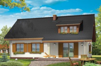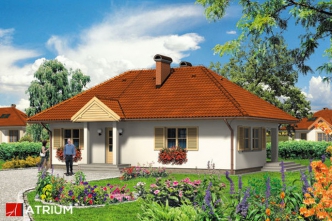 Elegancki i skromny dom parterowy, niepodpiwniczony. Zaletą tego projektu jest czytelny i praktyczny układ wnętrza z wyraźnym podziałem na strefę dzienną i nocną. Nieużytkowe poddasze o kącie nachylenia 35° nadaje się do adaptacji. W jej wyniku można uzyskać dodatkowo 40 m2 powierzchni o wysokości min. 180 cm. Prosta konstrukcja tego domu wpływa w istotny sposób na łatwość wykonania i tym samym na rzeczywisty koszt realizacji. Projekt ma warianty: ze stropem drewnianym (wersje A, B i E) i ze stropem Teriva (wersje C, D i F).