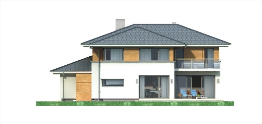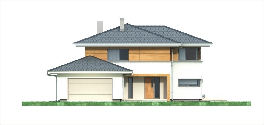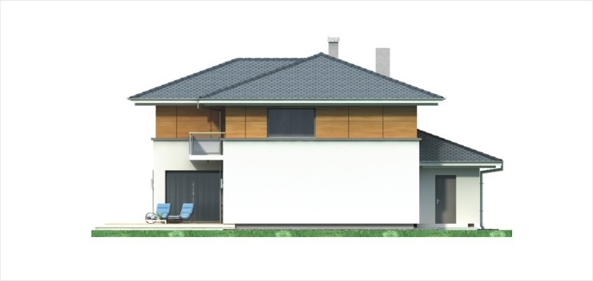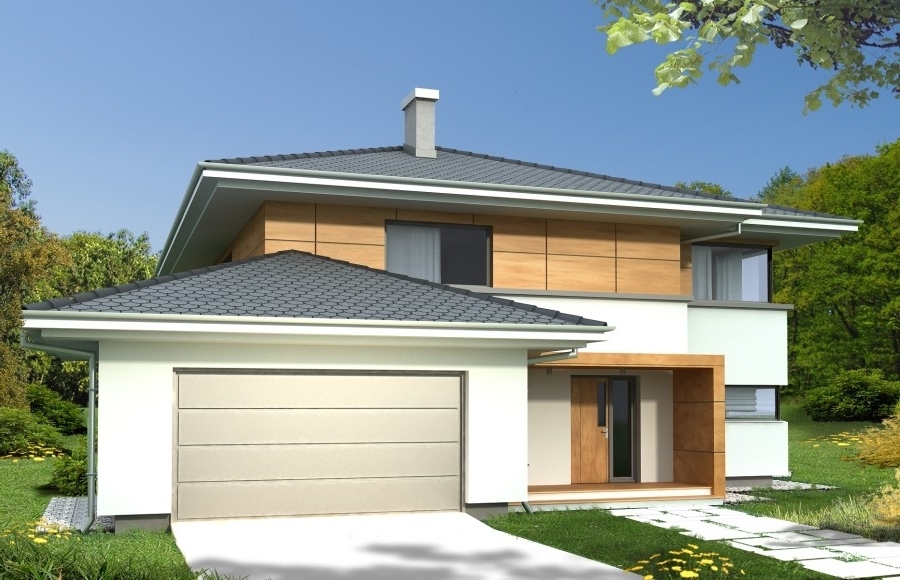 Wyjątkowy projekt - elegancki, prosty i funkcjonalny. Dom z serii energooszczędnych, zapewnia optymalny wariant jakości życia do kosztów zainwestowania w budowę. Bryła prosta, zwieńczona reprezentacyjnym dachem. Dom przeznaczony dla 4-6 os. rodziny. Przestronny parter jako otwarta część dzienna oraz wygodne piętro (pokoje z garderobami). W głębi usytuowany przestronny otwarty na ogród salon z kominkiem, łączy się narożnikowo z kuchnią i jadalnią. Taki układ zapewnia stały kontakt domowników. Na parterze znajduje się również pokój hobby/gabinet/pokój dla gości. Na piętrze po wliczeniu do powierzchni użytkowej garderób mamy 93,3m2, wygodna przestrzeń dla rodziny. Strefa wejścia głównego zaakcentowana jest formą nowoczesnej ramy. Taras delikatnie domknięty z dwóch stron, zadaszony balkonem - to idealne miejsce do wypoczynku. Dostępna jest również wersja Klasyk z dachem 2-spadowym (35o). Obie wersje występują z powiększoną kuchnią i jadalnią - skrzydło domu poszerzone o 1m (wersje B). Nad garażem do wyboru może byc taras. Dom Aleksandra można połączyć w bliźniaka, informacja u architekta.