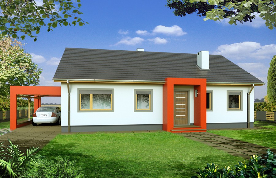 Albert - przytulny parterowy dom dla 3-4 osobowej rodziny. Albert 2 -wersja z poddaszem użytkowym (kąt nachylenia dachu 33o), posiada dodatkowe dwa pokoje i łazienkę i jest przeznaczona dla 3-6 mieszkańców. Prosta, dwuspadowa konstrukcja dachu i stropu oraz optymalne wykorzystanie przestrzeni ewentualnego poddasza wpływa na optymalizację kosztu uzyskania powierzchni użytkowej w budynku. Duże przeszklenia drzwi tarasowych z części dziennej i sypialni, mocno integrują dom z ogrodem i jednocześnie zwiększają przestronność wnętrza. Projekt Abert i Albert 2 występują w wariantach: bez wykusza w jadalni (A), z wykuszem (B), a każdy z nich może mieć wiatę na auto lub nie.