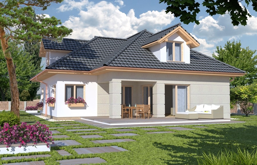 Dom zaprojektowany na planie litery L o...