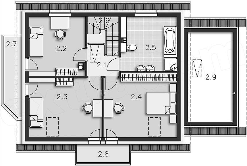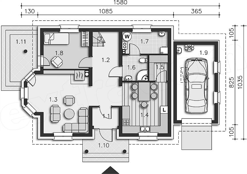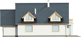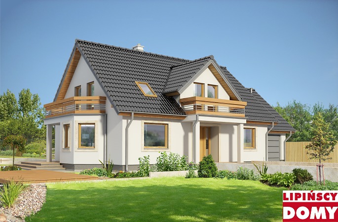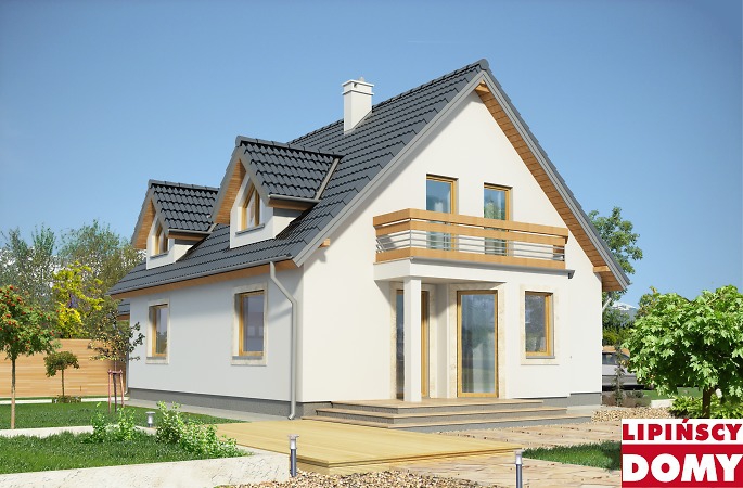 Dom energooszczędny idealnie nadający się na działki z wjazdem od południa. Ciekawie zaplanowany pokój dzienny daje wiele możliwości aranżacji, np.: wykonanie rozsuwanych drzwi do gabinetu za nim. Ładny wykusz mocno doświetla pokój i sprawia, że jest on bardzo słoneczny. Na poddaszu natomiast znajdują się trzy wygodne sypialnie i duża, doświetlona łazienka. Dostępna jest wersja standardowa Saloniki (LMP128).