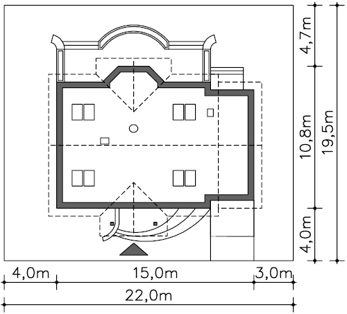 Wymiary budynku: 15 x 10.80 m