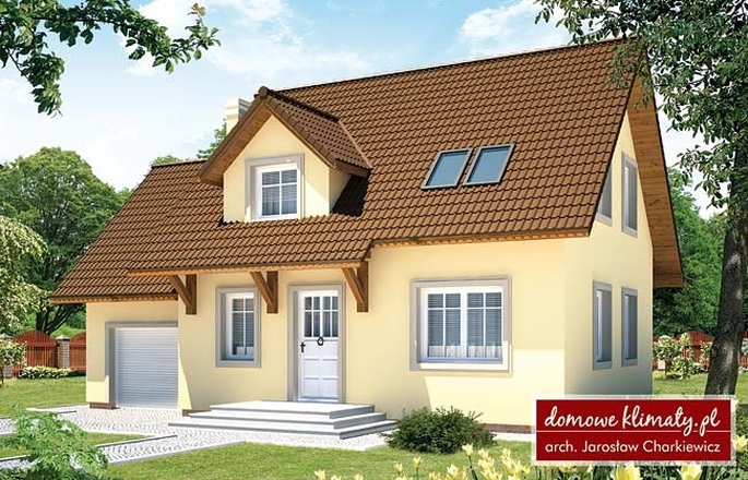 Piotruś to tradycyjny parterowy dom z użytkowym poddaszem. Ten niewielkich rozmiarów dom o sympatycznym charakterze i przytulnym wnętrzu jest idealnym rozwiązaniem dla inwestorów posiadających niewielka działkę. Architektura Piotrusia to esencja prostoty i praktyczności. Oszczędna forma i detal ograniczają koszt oraz sprawiają, że dom jest łatwy w realizacji. Piotruś mimo swych skromnych gabarytów oferuje mieszkańcom bardzo sprytnie zaprojektowane ergonomiczne wnętrze. Duże znaczenie miało tu zastosowanie otwartych powierzchni w rzucie parteru.