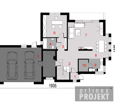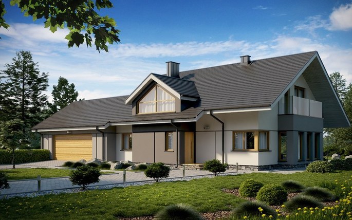 Dom mieszkalny jednorodzinny parterowy z poddaszem użytkowym. Idealny dla 4-5-osobowej rodziny. Prosta bryła budynku oraz nieskomplikowana konstrukcja wpływają na niższe koszty budowy. Bardzo funkcjonalny podział pomieszczeń z oddzielną strefą techniczną, strefą dzienną i nocną. Atutem tego projektu jest również nowoczesny wygląd elewacji. Wersja drewniana jest dostępna.